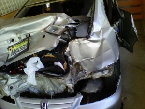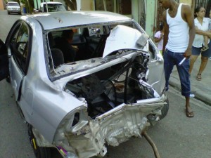 Salimos como a las 8:30 PM rumbo a Bonao del Humazo un lugar para comer donde siempre nos detenemos después de tanto alcohol. En la bajada de Miranda, de la vega a Bonao, el carro se deslizó por la orilla derecha y nos barrimos dando como 5 a 6 vueltas y quedando tirados en la cuneta. Provocando que otros vehículos también chocarán pero sin victimas fatales, gracias a Dios.