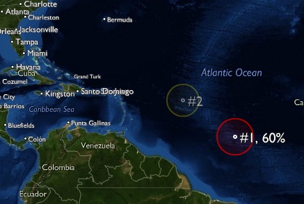 Por otro lado, se informa de dos disturbios, el primero se localiza a unos 1710 kilómetros al este de las islas de Sotavento (Antillas Menores), y mantiene muy bajo potencial para su desarrollo. El segundo se ubica a unos 2610 kilómetros al este de las islas de Barlovento (Antillas Menores). Este sistema muestra altas probabilidades de alcanzar la categoría de ciclón tropical en las siguientes 48 horas informa la Oficina Nacional de Meteorología.