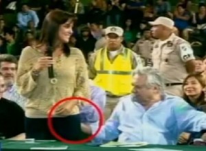 Las imágenes difundidas por un canal de televisión local muestran a la concejal de pie hablando ante un auditorio, cuando el indecoroso alcalde le da una palmada en el trasero. Visiblemente incómoda, ella toma la mano de Fernández y la aleja.