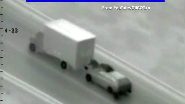 Podría ser parte de la película Rápido y Furioso, pero no lo es. Este no es un video de ficción, sino de la vida real: un grupo de la mafia rumana fue descubierto tratando de robar un camión en plena marcha y a altísima velocidad, mientras era captado en una cámara de vigilancia.