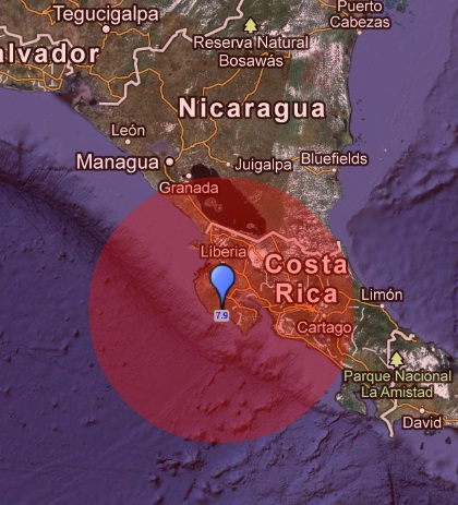 El centro del sismo, que se registró a las 14H42 GMT, se ubicó a 80 km de la ciudad de Liberia, en Costa Rica, y a 151 km al oeste de San José.