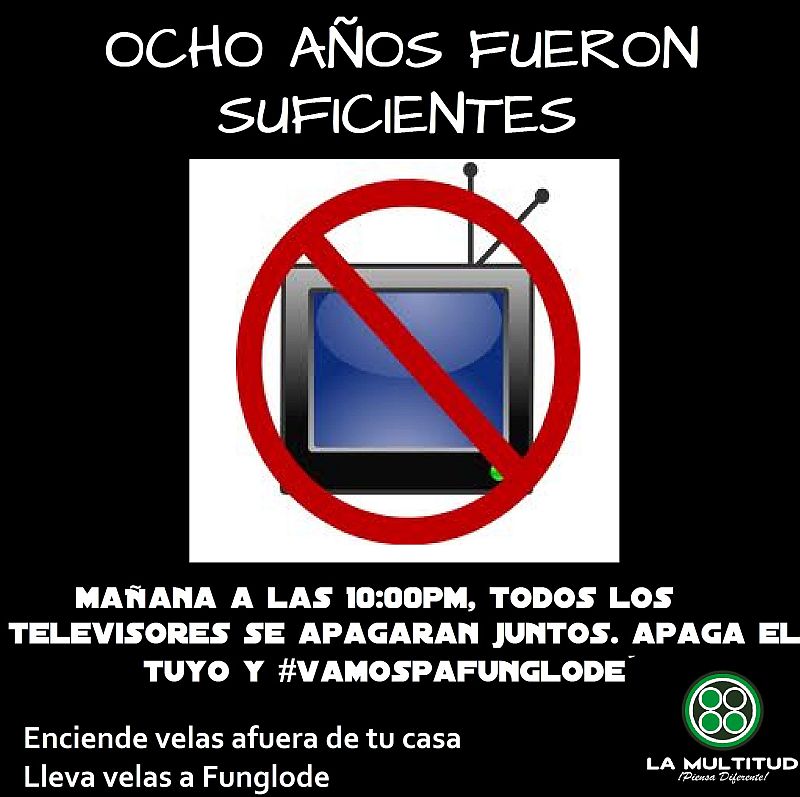 Santo Domingo. El movimiento La Multitud, uno de los grupos que lideriza las protestas contra la reforma fiscal, hizo un llamado al país para que “apaguen sus televisores a las 10:00pm”, momento en que Leonel Fernández ofrecerá una alocución al país, y en cambio salgan a las calles a protestar con velas y vestidos de negro.