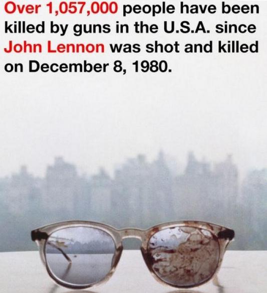 “Más de un 1.057.000 personas han sido asesinadas por armas en Estados Unidos desde que John Lennon fue baleado y asesinado el 8 de Diciembre de 1980”, publicó Yoko Ono en su cuenta de Twitter.