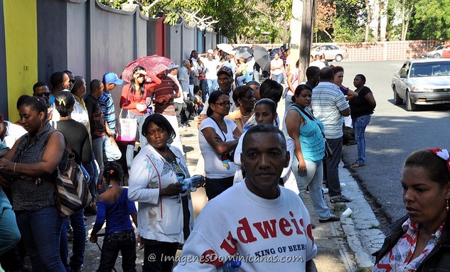 Largas filas de personas en Color Visión esperando los números de Cristian Casa Blanca