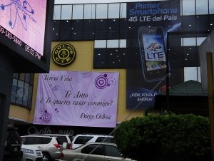 Los que circulan por la avenida Juan Pablo Duarte donde está ubicada la plaza Internacional, al menos hacen una parada para leer el mensaje del joven de reconocida familia santiaguense, quien como todo Romeo tras su Julieta busca unir su vida a la mujer que ama.