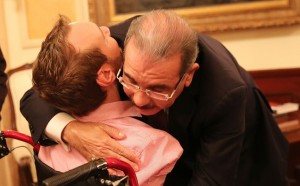 Nick Vujicic recibe un abrazo de Danilo Medina