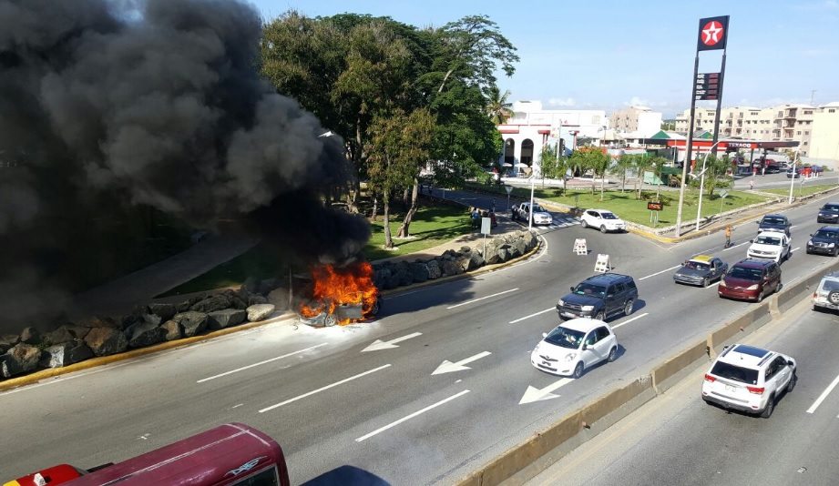 Vía Isaac Ramírez nos llegan estas imágenes en las que se puede apreciar el momento en que un carro se incendia a escasos metros del Puente Juan Carlos en Santo Domingo Este.