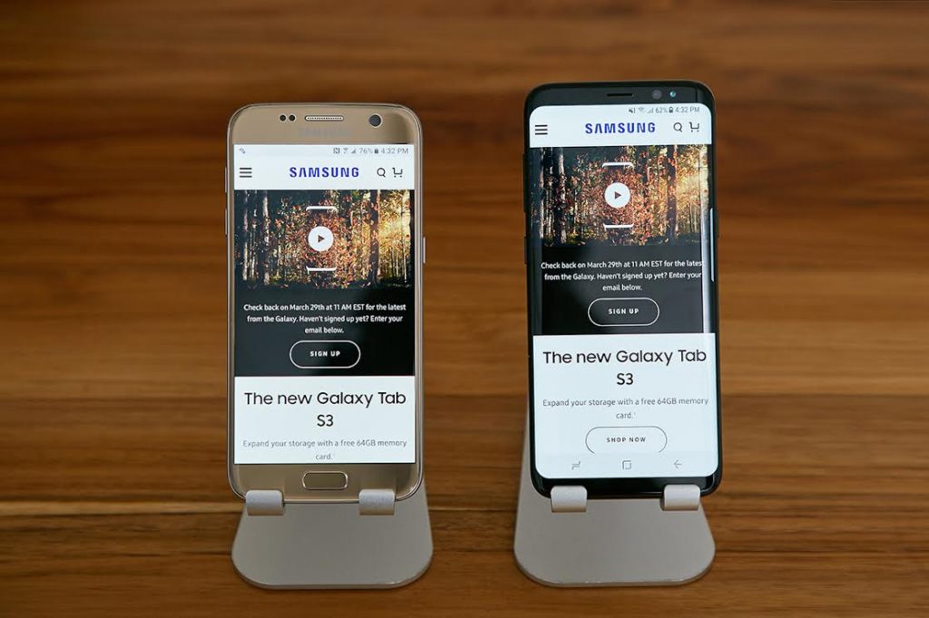 Cuando se ve en modo paisaje, las películas 21:9 rellenan el monitor 18, 5:9 de Galaxy S8, aumentando el área visual en el 36% en comparación con el Galaxy S7. Esto, junto con las capacidades de primerísima calidad de Alto Rango Dinámico (HDR), permite que los usuarios vean el contenido exactamente como el creador lo pretendía. Las experiencias de videojuegos también se mejoran, como cualquier juego que es compatible con un modo en pantalla completa de 18, 5:9 se optimiza de forma automática para que se pueda visualizar la pantalla completa.