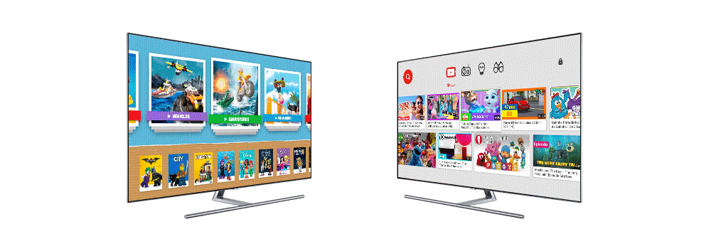 Desde 2013, los Smart TV Samsung que pueden acceder a la App Store de Samsung han ofrecido soporte para la aplicación YouTube Kids, una plataforma que permite a los niños navegar fácilmente, con botones más grandes, desplazamiento más simple y contenido dividido en cuatro categorías: Shows, Música, Aprendiendo y Explorando. También se brinda soporte para LEGO TV, lo que permite a los niños transmitir sus episodios favoritos de LEGO® en un televisor, con una navegación conveniente organizada por temas, historias y edades.