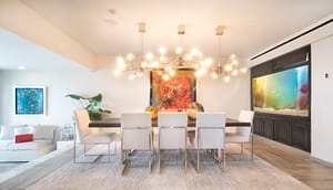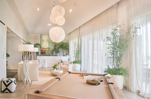 The King’s Villa, diseñada por el dominicano Miguel Fernández, ocupa el cuarto piso de una de las áreas más íntimas del hotel; 722mts2 repartidos en tres habitaciones (dos master suite y una de invitados ), igual número de terrazas completamente amuebladas con billar, bar, tres jacuzzis, un área de spa, comedor, una sala de estar con vistas hacia el océano y, para coronar, una imponente pecera muy al gusto de Romeo.