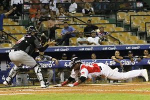 Los capitaleños tuvieron oportunidad de empatar el partido en la octava entrada con dos outs contra Reymin Guduan mientras Franchy Cordero corría en la inicial, cuando César Puello conectó un batazo a la zona de seguridad del bosque derecho, que atrapó Moisés Sierra, impactándose contra la pared para ponerle punto final a la entrada.