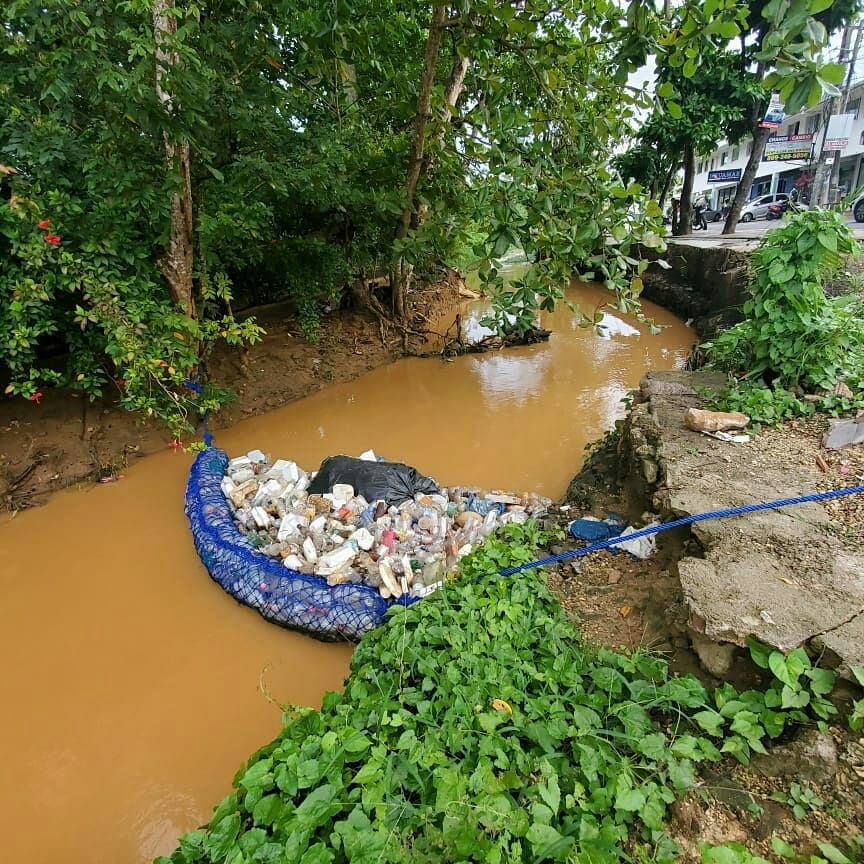 Samaná.- Excelente la propuesta de Bioturismo RD, quienes por iniciativa de la Dirección de Turismo de Samaná, esta #Biobarda la diseñaron, elaboraron y colocaron con pescadores de las Terrenas y estudiantes de escuelas locales, a partir de plásticos reutilizados del vertedero.
