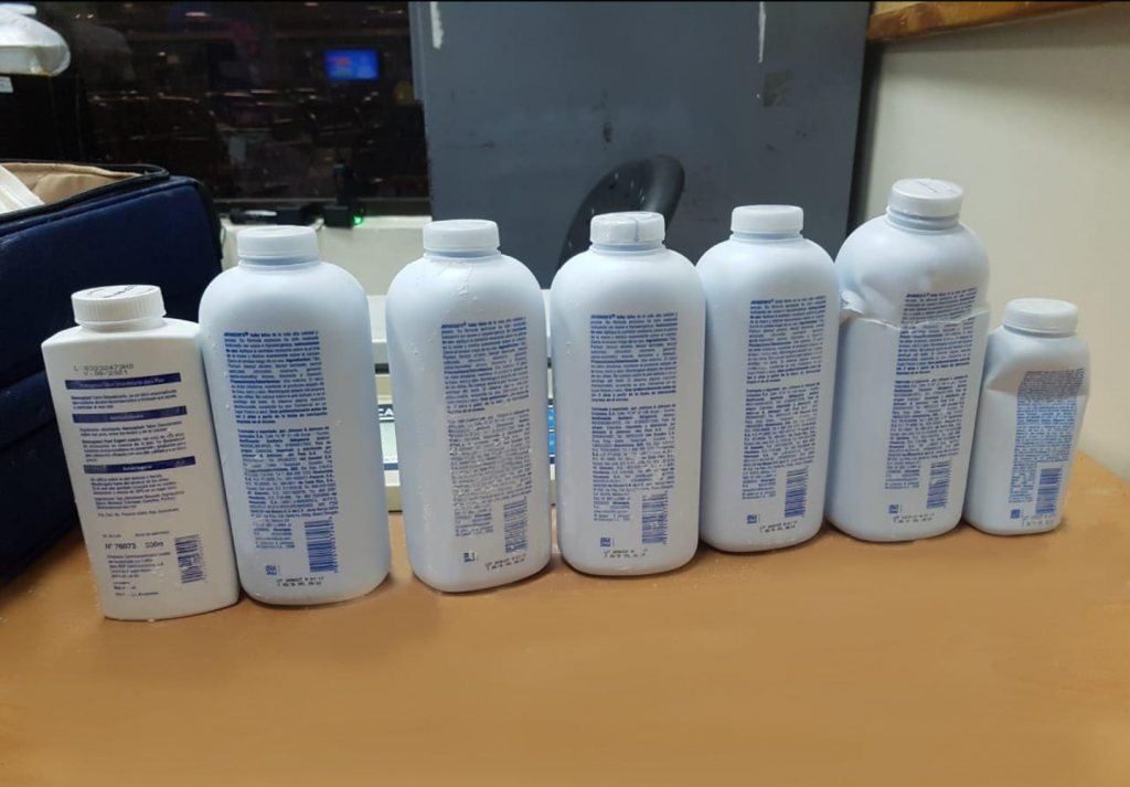 Santo Domingo- Una mujer dominico- española fue detenida en el Aeropuerto Internacional de las Américas y le decomisaron siete potes rellenos de cocaína, que simulaban ser talcos para bebés.