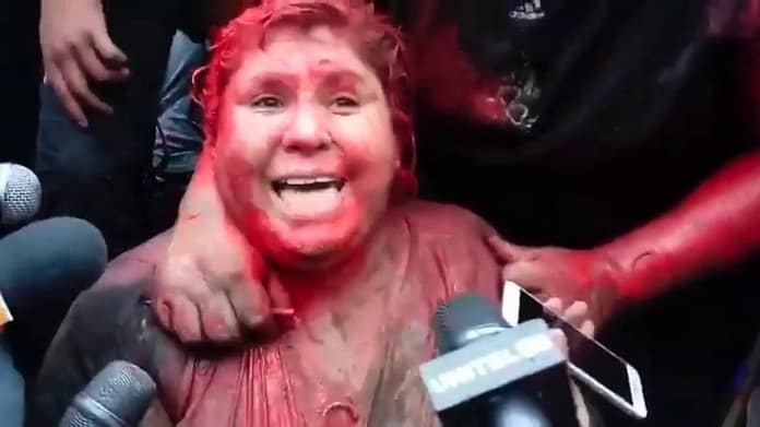 A la alcaldesa la rociaron una pintura de color rojizo por el cuerpo y el cortaron en pelo en plena calle, entre un griterío de grupos de gente, muchos de ellos jóvenes, con palos y piedras.