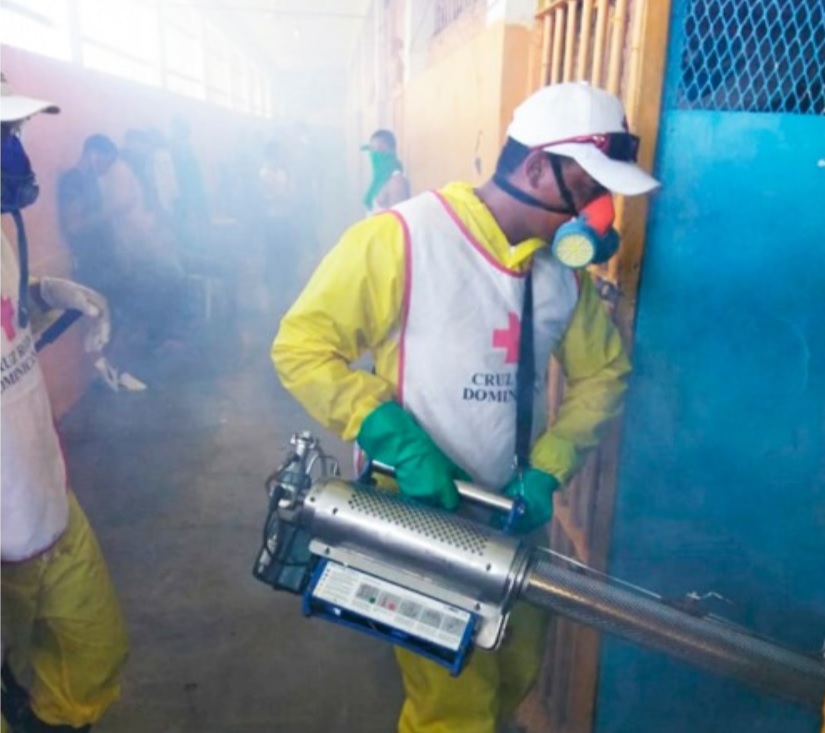 La Cruz Roja Dominicana está realizando jornadas de desinfección y fumigación desde el 24 de marzo del año 2020. Dichas jornadas se llevan a cabo en sectores populosos de Santo Domingo y en centros penitenciarios que poseen alta vulnerabilidad de contagio y posible propagación del COVID-19.
