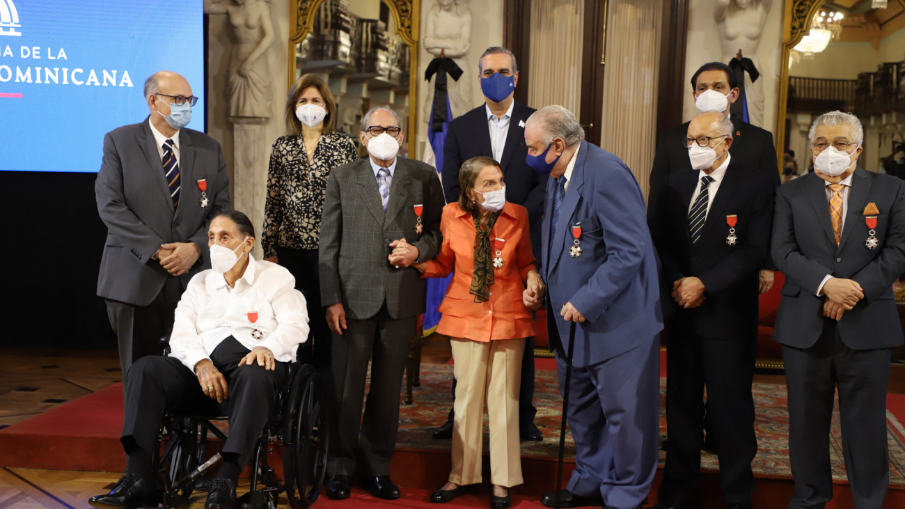Santo Domingo, RD.- El presidente Luis Abinader condecoró este miércoles con la medalla de la Orden Heráldica de Cristóbal Colón en el grado de Caballero, a siete prominentes profesionales de la medicina que durante décadas han trabajado por la salud pública.