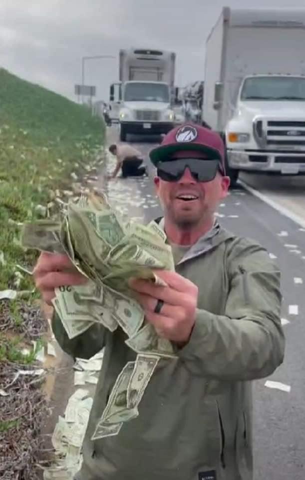 La atleta Demi Bagby, quien presenció el hecho, compartió en sus redes sociales un video en el que se aprecia a varias personas juntando el dinero mientras el tráfico en dirección a la ciudad de San Diego permanecía paralizado.