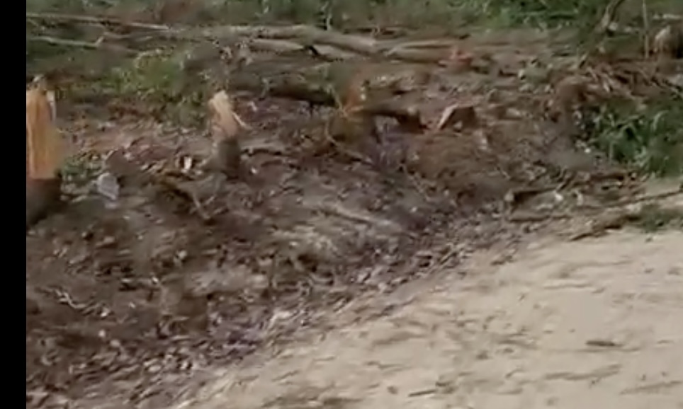 Durante un recorrido por la zona  se observó que en las inmediaciones permanecían decenas de obreros recogiendo los escombros de la deforestación y también cortando otros árboles de menos grosor.
