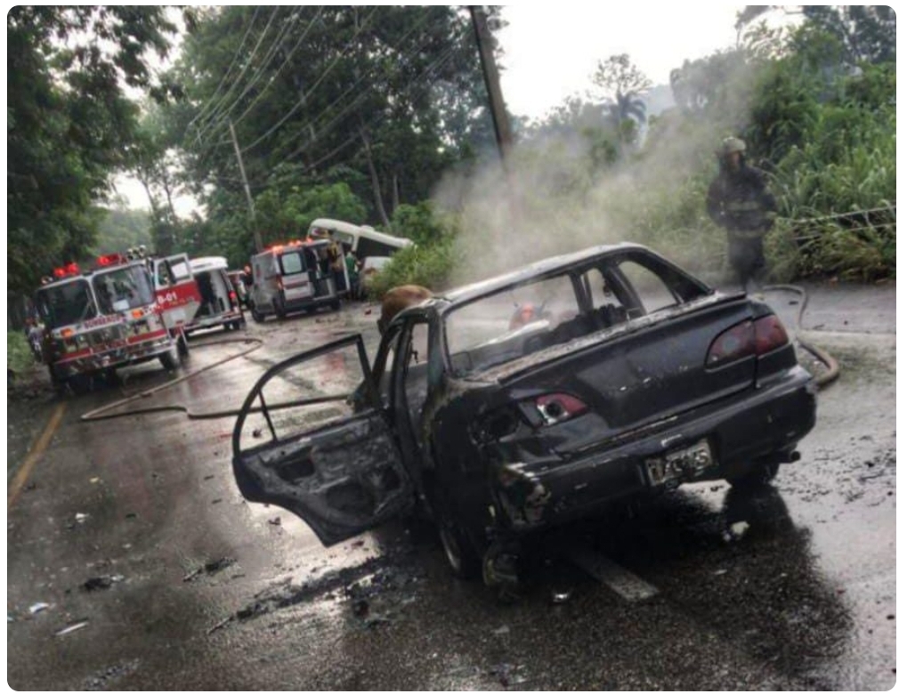 En el accidente se encuentra involucrado un autobús y un carro incendiado.