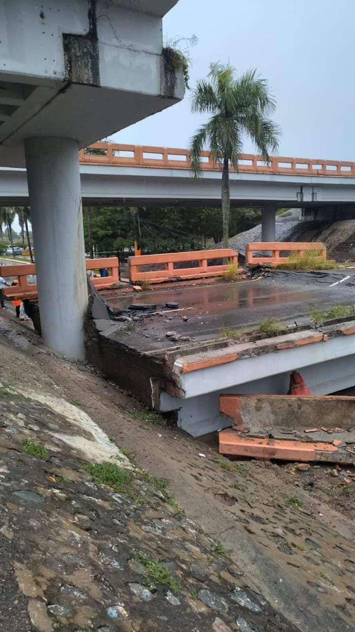 La Vega, RD.- Colapsó la tarde de este lunes el ya deteriorado puente seco en la Autopista Duarte, tramo Pontón-La Vega, debido a las lluvias y los fuertes vientos provocados por el huracán Fiona.