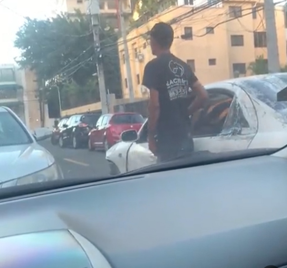 El vídeo muestra cómo el hombre se desmonta de un carro con un alicate en la mano para ejecutar el robo, cuando se acerca a la capota del vehículo estacionado, el conductor le tocó bocina para frustrar la acción.