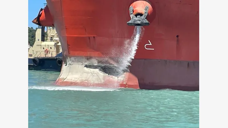 Un barco de carga chocó contra el espigón del muelle de carga del Puerto Taíno Bay, en Puerto Plata, al mediodía del sábado.