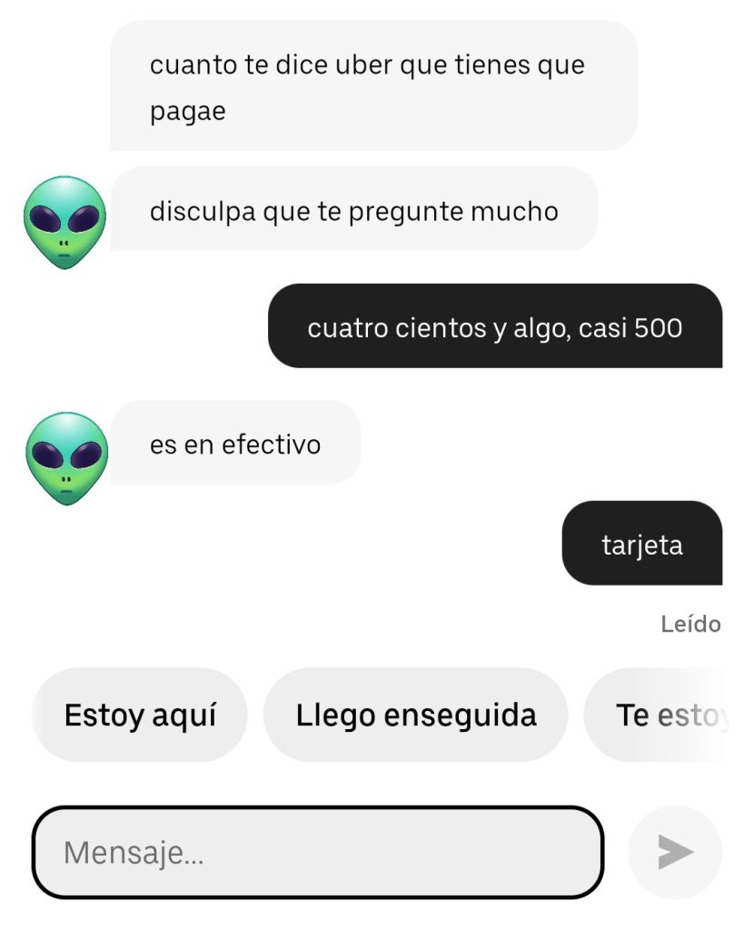 Pido un servicio, el conductor lo primero que pregunta a través del chat de la aplicación es