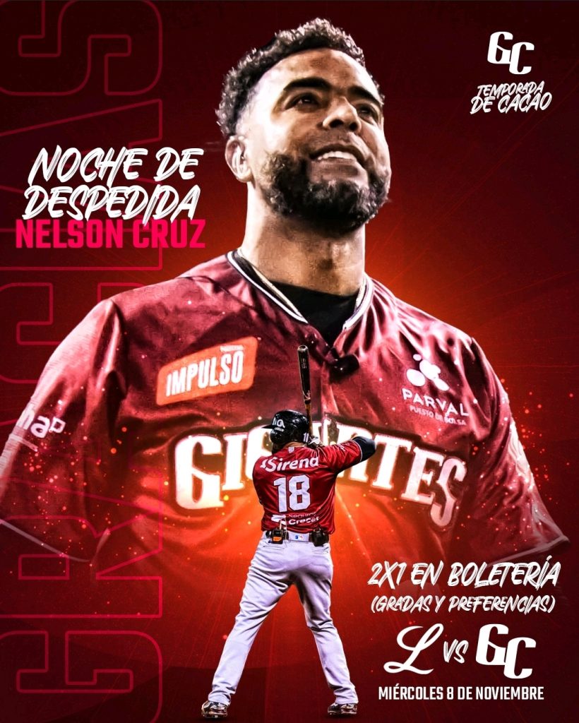 El encuentro del miércoles 8 de noviembre en el estadio Julián Javier será oficialmente el último en la carrera del gran Nelson Cruz, uno de los más importantes peloteros en la franquicia y de la liga dominicana.