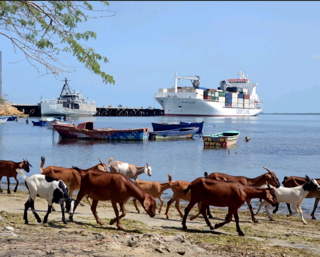 La imagen tiene su logro principal en el Angulo en que fue tomada en que capta un grupo de chivos en la orilla, teniendo como fondo el puerto de Manzanillo, en el cual se encuentra surto un crucero turístico.