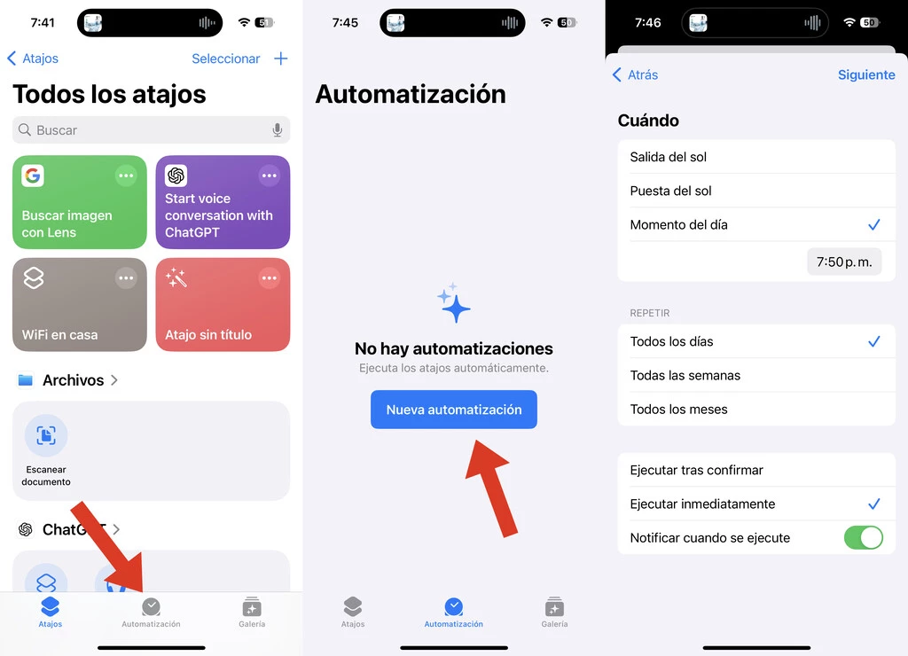 -Accedemos a la aplicación Atajos en el iPhone y presionamos sobre Automatización