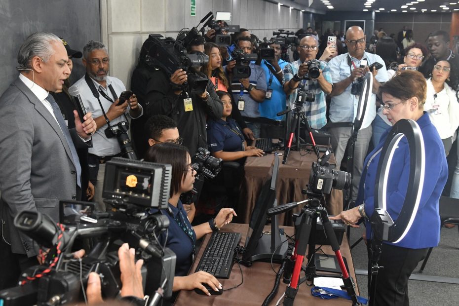 La captura de datos biométricos y personales inició con la servidora de la Junta Central Electoral, Digna Mercedes Díaz Rodríguez, quien tiene 53 años laborando en la institución.