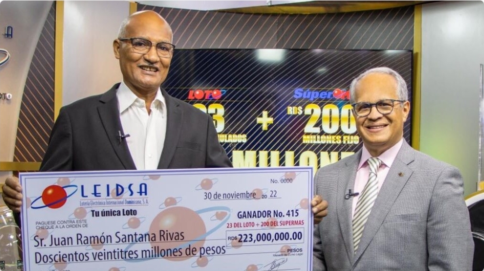 La Lotería Electrónica Internacional Dominicana, S.A (LEIDSA), “Tu única Loto”, entregó a Juan Ramón Santana… Leer más »Este si que pasará unas buenas navidades con sus 223 millones