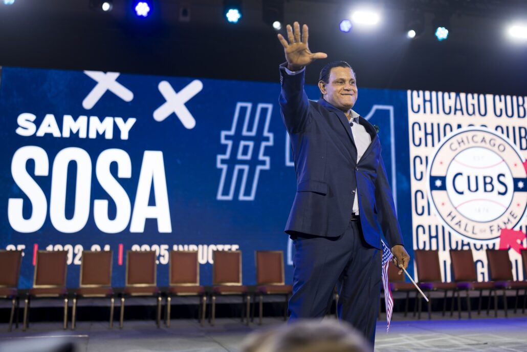 Sammy Sosa trotó hacia el escenario, enarbolando una bandera estadounidense. La multitud aplaudió con entusiasmo.… Leer más »Fanáticos de los Cachorros de Chicago le brindan una cálida bienvenida a Sammy Sosa
