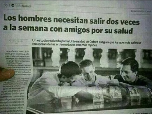 Los hombres necesitan salir dos veces a la semana con amigos por su salud….
