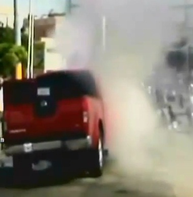 Reporta el periodista José Gutiérrez el juidero que se armó en una estación de combustible localizada en la salida de San Francisco de Macorís a Nagua cuando una camioneta se quemaba, a cubetazos limpios pudieron aplacar las llamas.